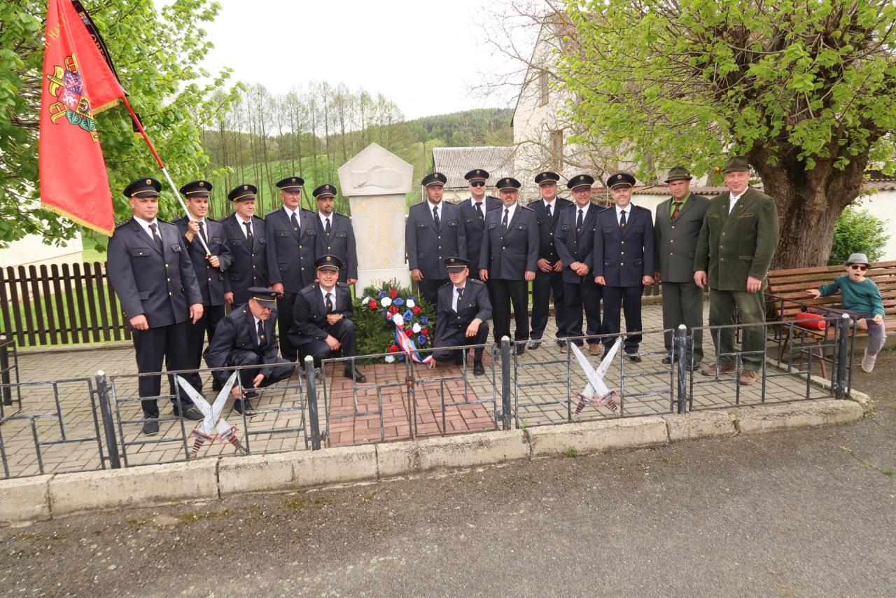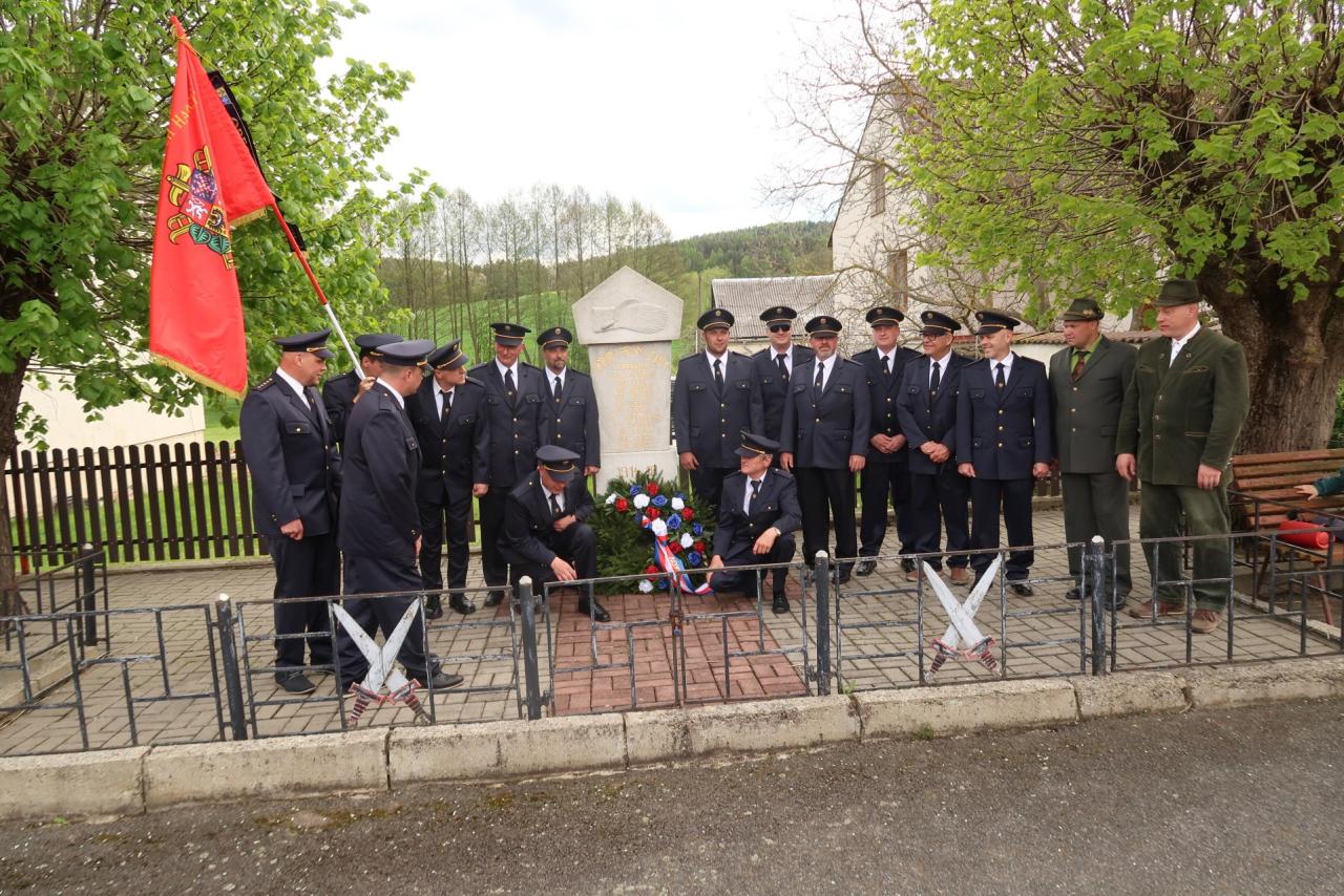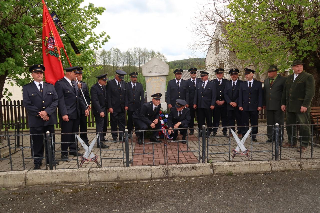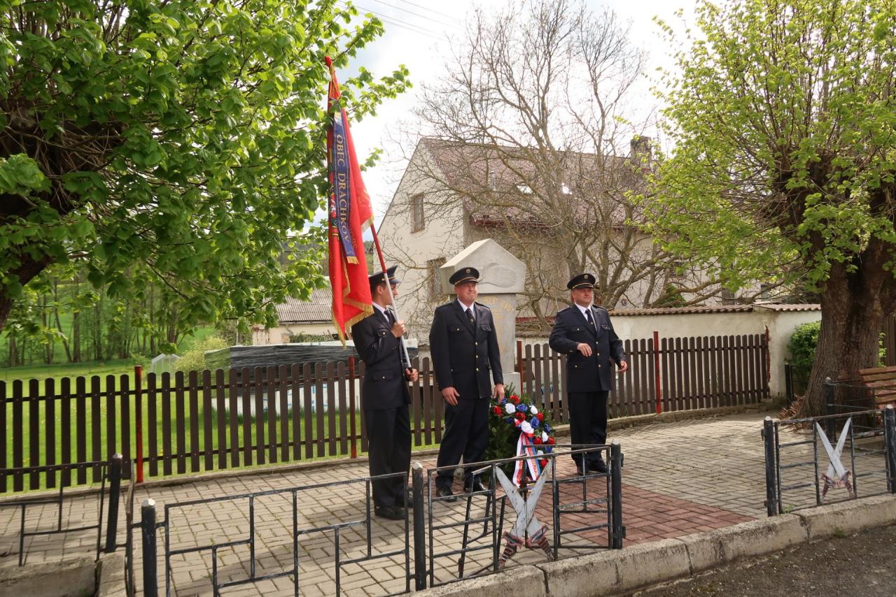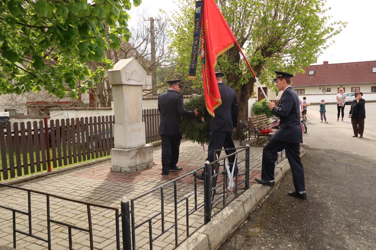 Jednotka SDH Drachkov položila věnec k pomníku válečných veteránů.