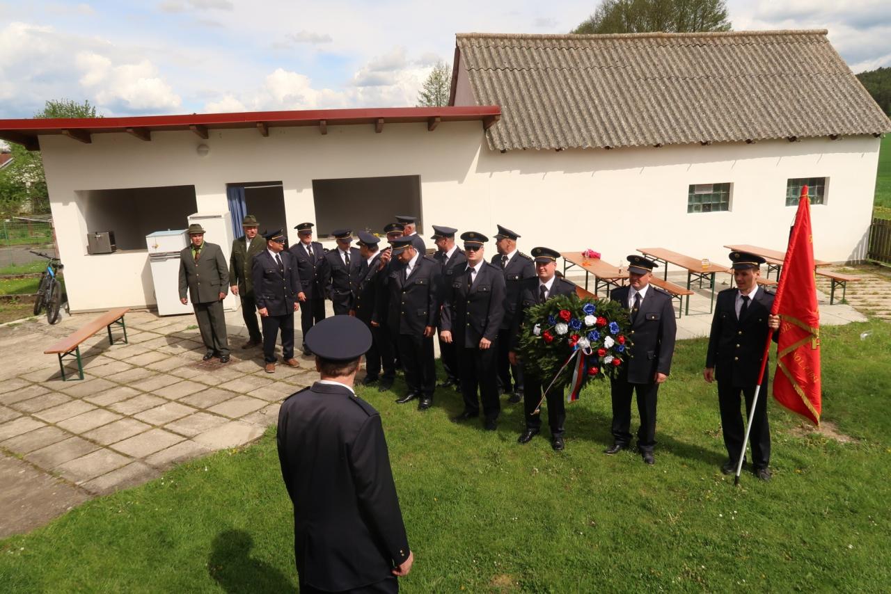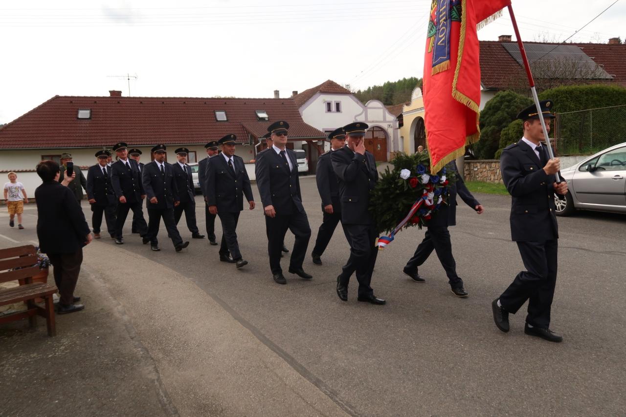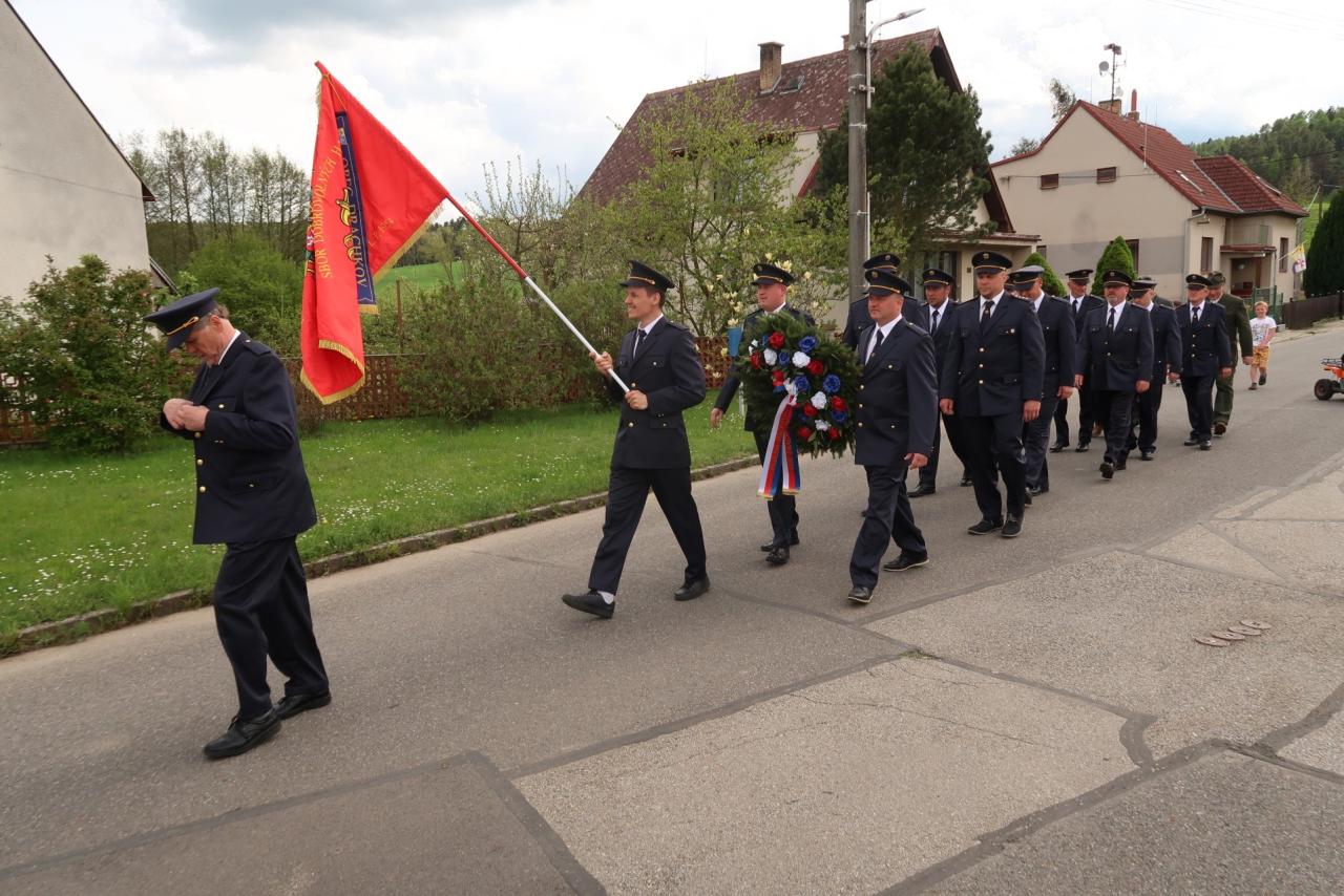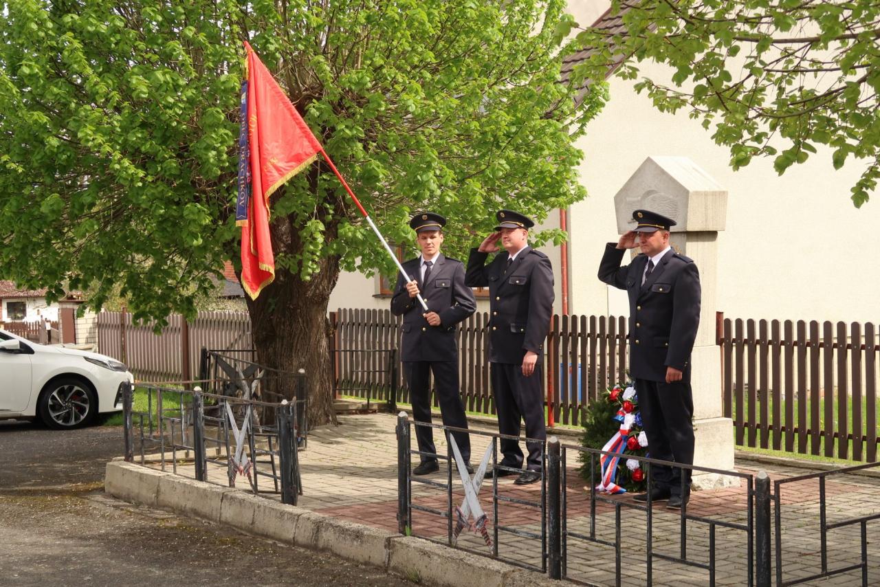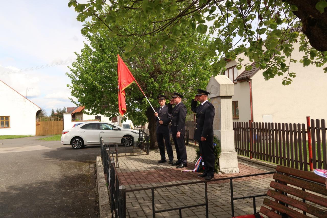 Jednotka SDH Drachkov položila věnec k pomníku válečných veteránů.