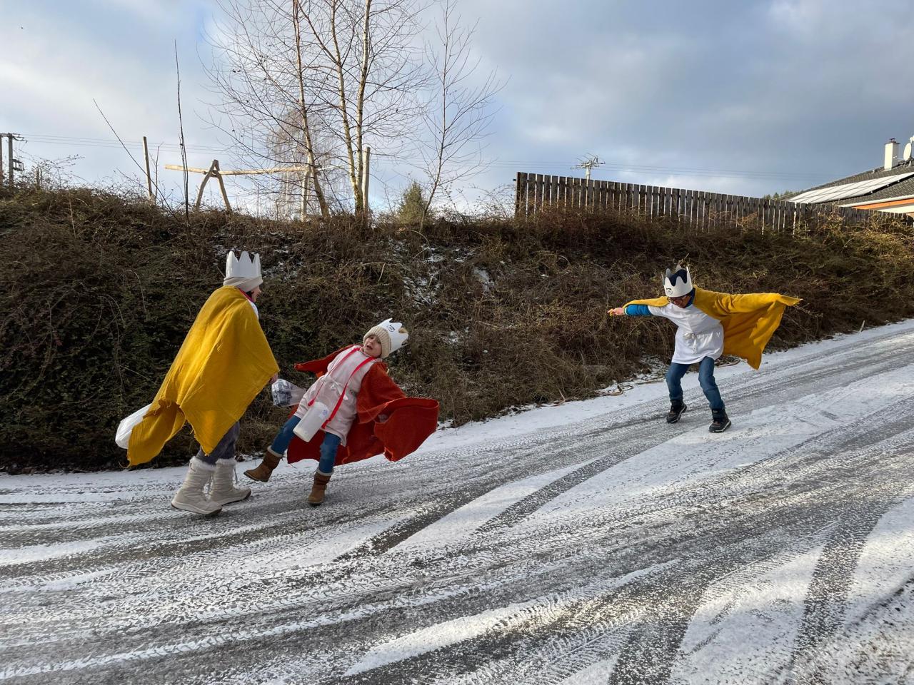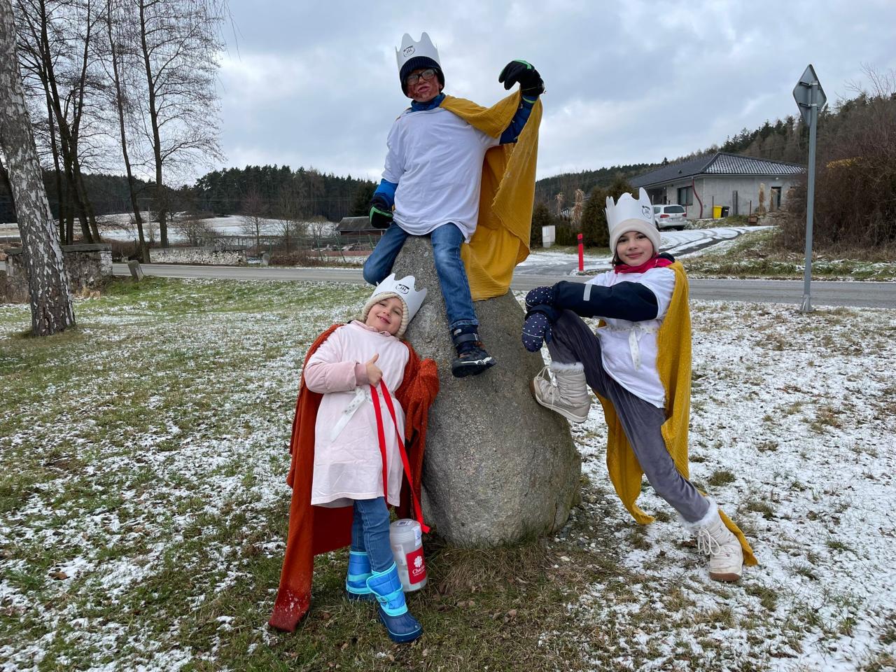 Král a královny děkují za všechny příspěvky do kasičky i sladkosti které dostali při letošní tříkrálové sbírce. Zvlášť pak děkujeme těm lidem, kteří na nás i přes svoji nepřítomnost mysleli a zanechali něco za dveřmi . Král a královny zpívali celkem 38 x, z toho jedenkrát koni.